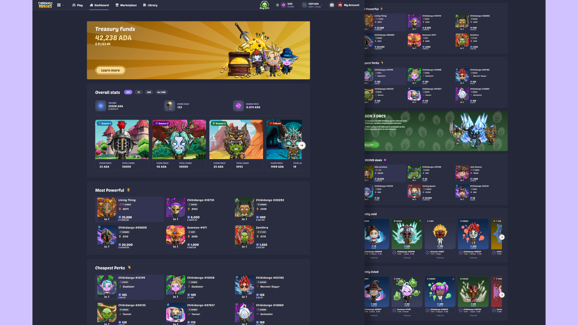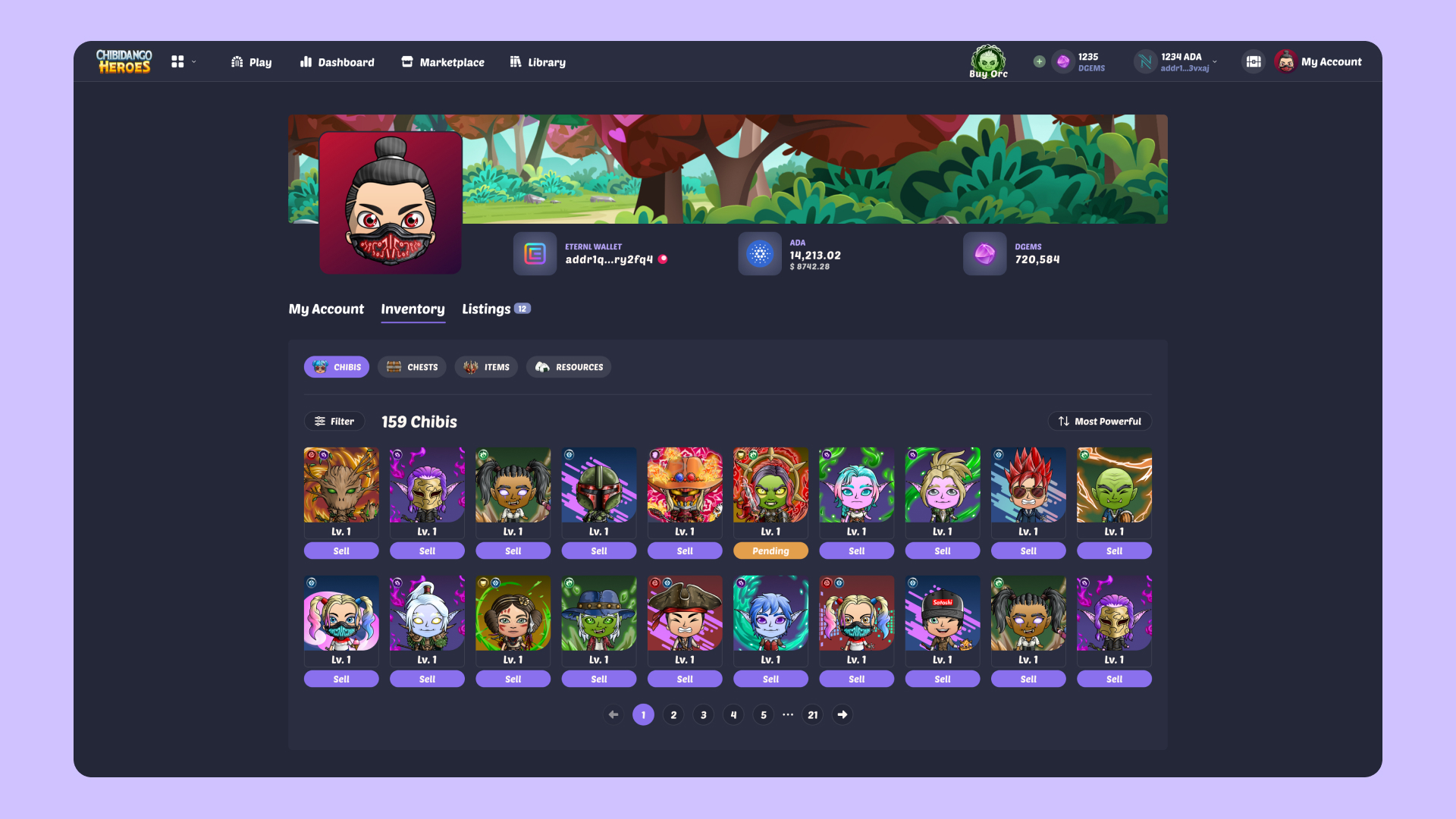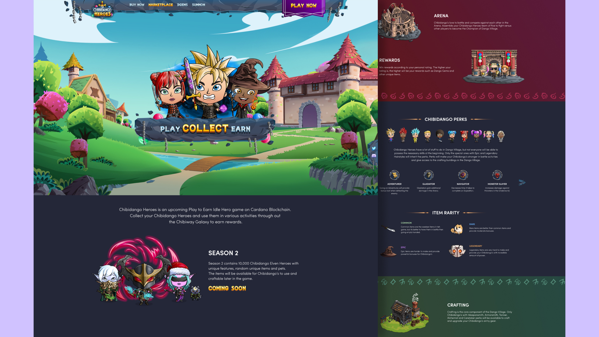 Chibidango Heroes is a Play to Earn Idle Hero Game on Cardano Blockchain. Players aim to battle, summon, collect, craft items and upgrade village buildings for their Heroes. Community owned economy is built as the core for players to buy, sell and trade resources in the game universe through skill and contributions to the ecosystem.
