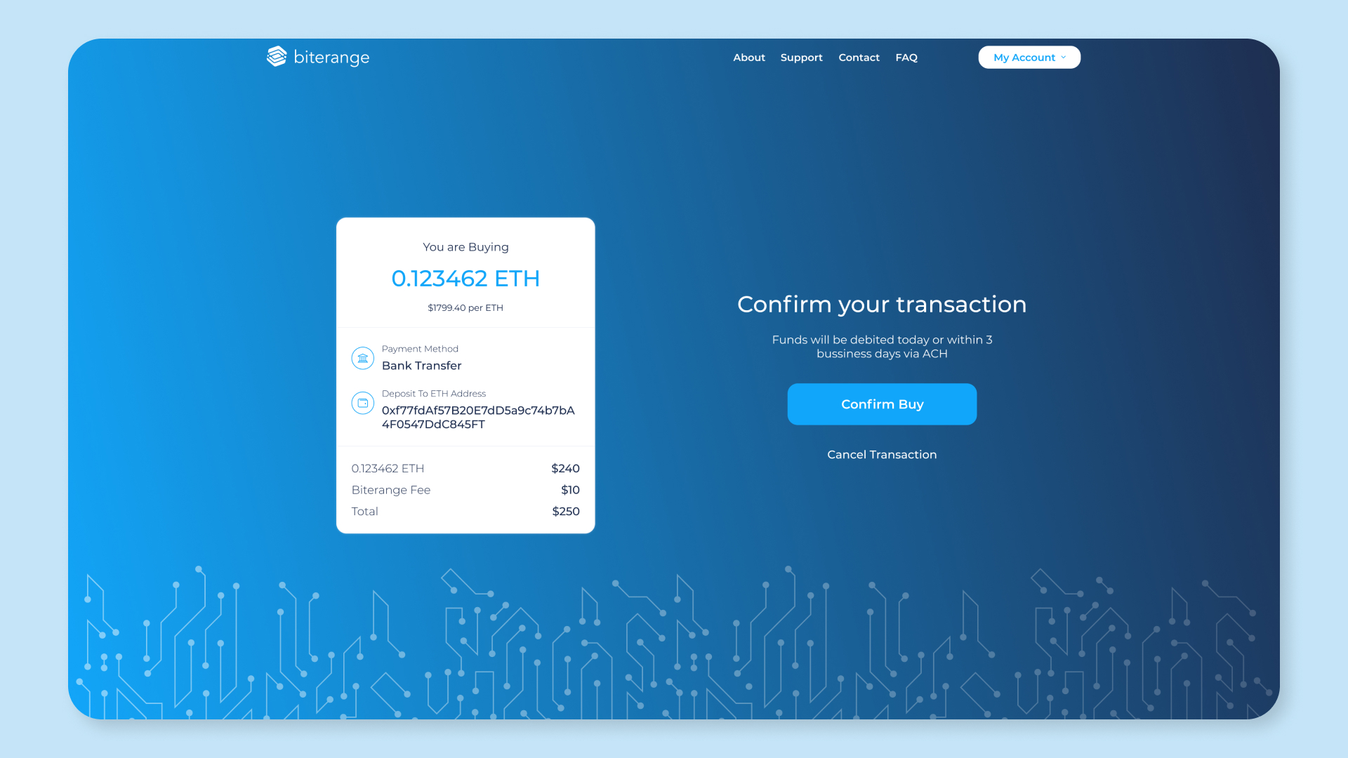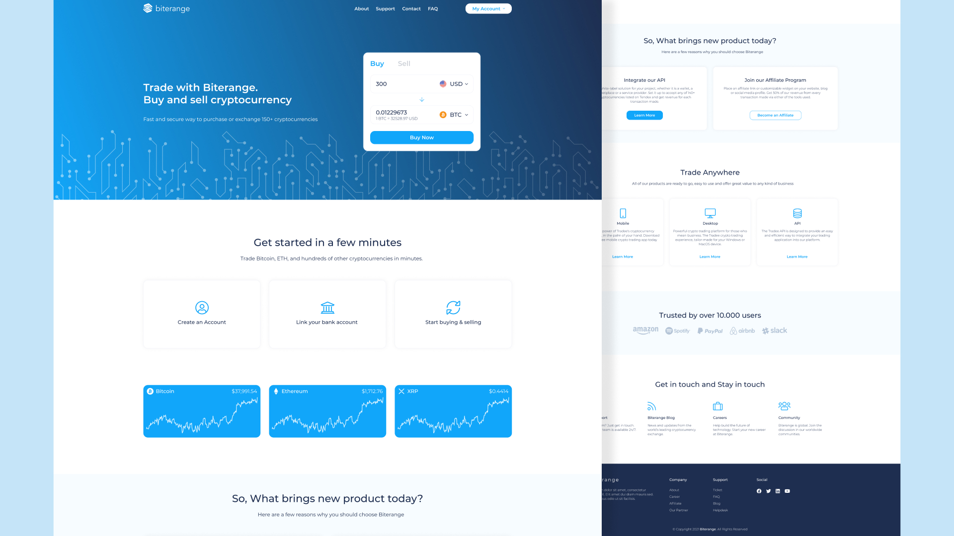 Biterange is a lightweight crypto exchange for buying popular cryptocurrencies