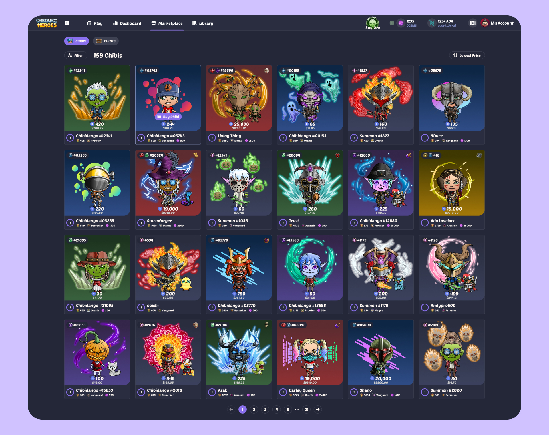 Chibidango Heroes is a Play to Earn Idle Hero Game on Cardano Blockchain. Players aim to battle, summon, collect, craft items and upgrade village buildings for their Heroes. Community owned economy is built as the core for players to buy, sell and trade resources in the game universe through skill and contributions to the ecosystem.